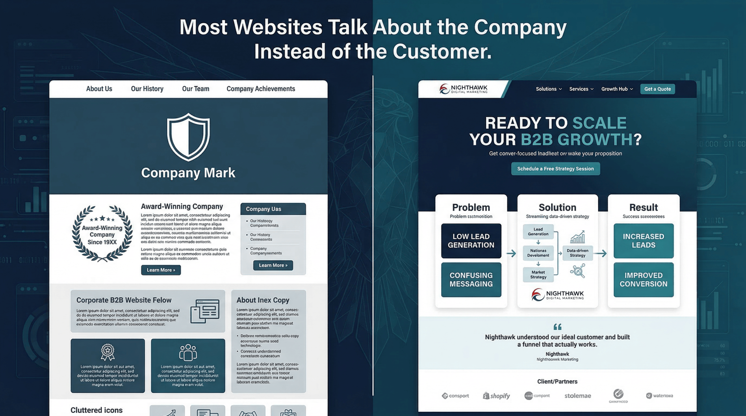 The most effective websites shift the narrative away from the company and toward the customer’s challenges and desired outcomes.